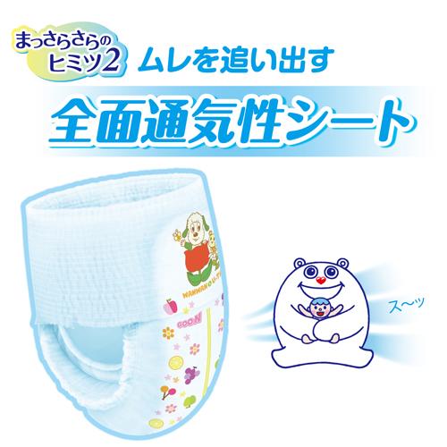 お店TOP>ベビー&キッズ>おむつ>紙おむつ>パンツ式 Lサイズ>グーン パンツ まっさらさら通気 Lサイズ 女の子 (56枚入)【グーン パンツ まっさらさら通気 Lサイズ 女の子の商品詳細】●「まっさらさら吸収体」は、おしっこをすばやく吸い込む!おしっこがおむつ表面に残らないからすぐにお肌がさらさらで快適!●お腹周りのふんわり感をアップ!赤ちゃんのお肌にやさしくフィット。