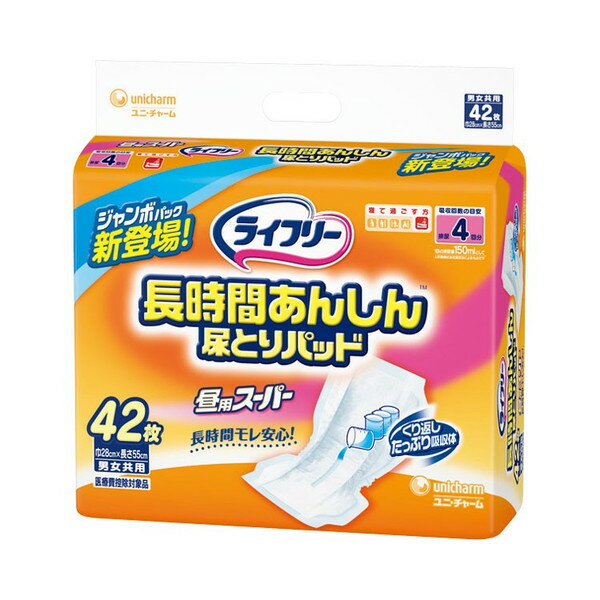 7/4-11★P最大24倍★【全国配送可】-ライフリー長時間あんしん尿とりパッド 4回 55940 42枚(3) 1入り ユニ・チャーム JAN 4903111584680 kt301313 取寄品 排泄関連 紙おむつ 尿取りパッド-【介護福祉用具】