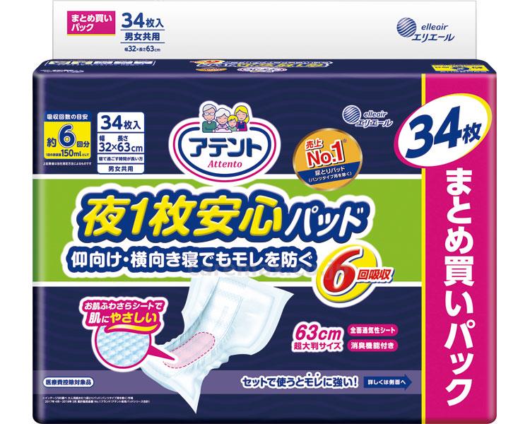 7/4-11★P最大24倍★【全国配送可】-アテント夜1枚安心パッド 6回吸収 773567→773689 34枚(3) 3入り 大王製紙 JAN 4902011775679 kt395868 取寄品 排泄関連 紙おむつ 尿取りパッド-【介護福祉用具】