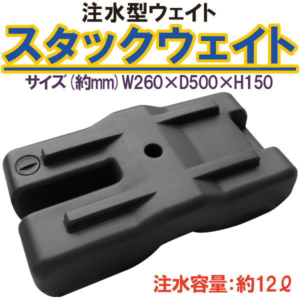 スタックウェイト タープ・パラソル固定用ウェイト (注水タイプ) テント シェード 本体サイズ:約W260 x D500 x H150mm 中央ホール:約22mm サイドスリット幅:約35mm アンダースリット:約高さ55mm x 幅60mm 仕 様 材質:ポリプロピレン カラー:ダークグレー 重量(空):約0.95kg 重量(注水時):約12kg 備 考 砂と水を併用することで更に重量を増やすことが出来ます。