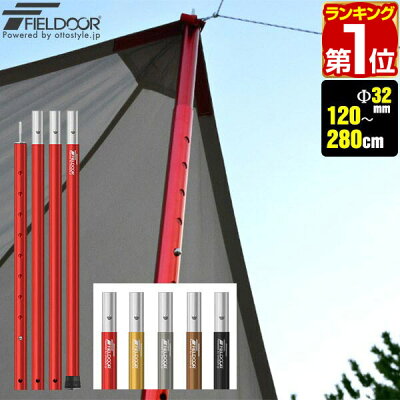 1年保証 テントポール アルミ製テントポール 直径 32mm 高さ120 - 280cm 8段階 高さ調整 アルミ サブポール タープポール キャノピー 用 ポール 分割式 テント ワンタッチテント タープ タープテント ドームテント の 日よけ FIELDOOR ★[送料無料][あす楽]