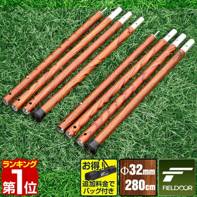 1年保証 テントポール アルミ製テントポール 2本セット 直径 32mm 高さ120 - 280cm 2本セット 8段階 高さ調整 アルミ 木目調 サブポール キャノピー 用 ポール 分割式 テント ワンタッチテント タープ タープテント ドームテント FIELDOOR ★[送料無料][あす楽]