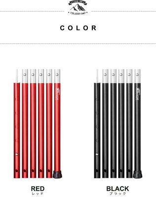 ブランド: フィールドア(FIELDOOR) カラー: ・レッド ・ブラック 材質: アルミ A6061(アルマイト加工) サイズ: (約)φ2.4cm×75cm〜235cm (有効長 : (約)70cm〜230cm) 重量: (約)900g(1セットあたり) 特記事項: こちらの商品にはペグ・ロープは付属いたしません。