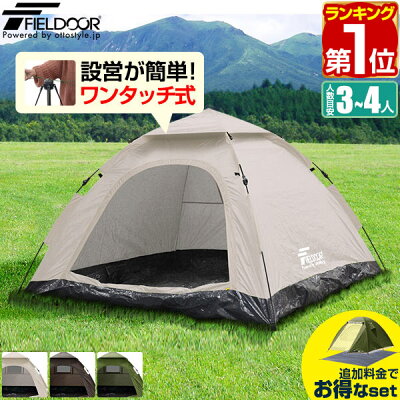 1年保証 テント ワンタッチ 3人用 4人用 ワンタッチテント UVカット スクエア テント 耐水圧 1,500mm以上 ドームテント キャンプテント ファミリー キャンプ用品 アウトドア セット 簡易テント 軽量 日よけ キャンプ FIELDOOR ★[送料無料][あす楽]